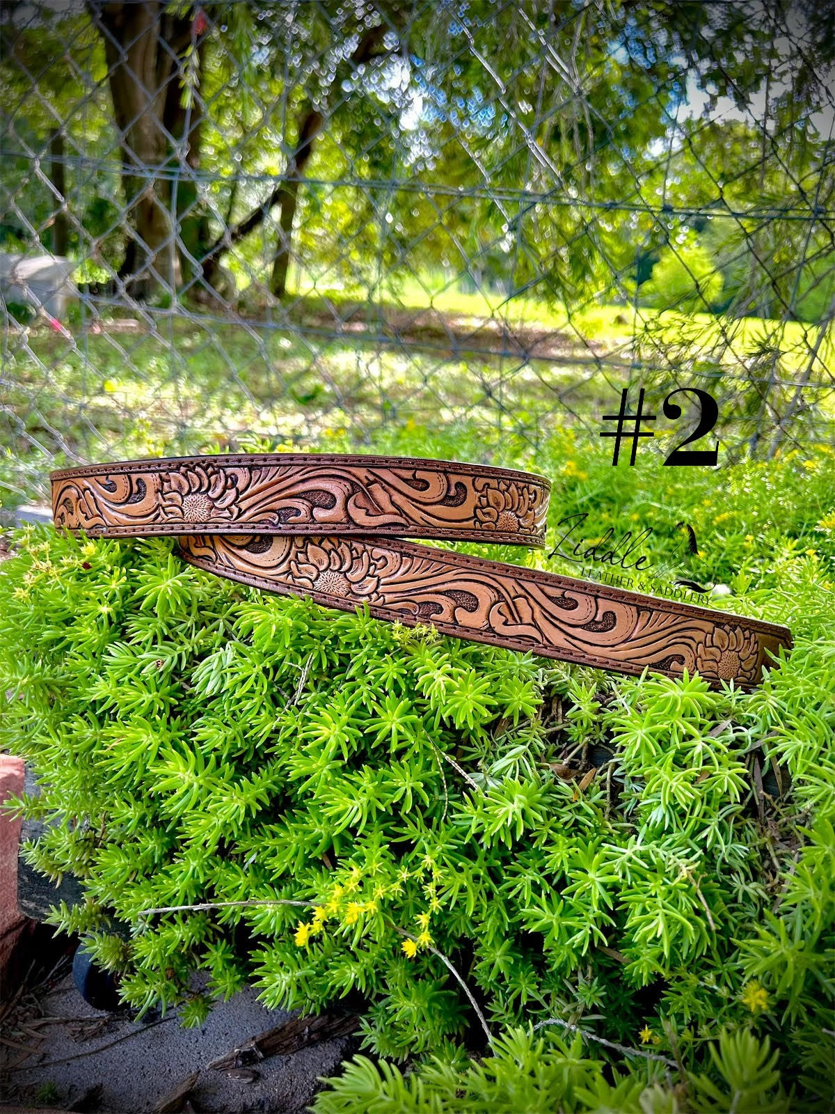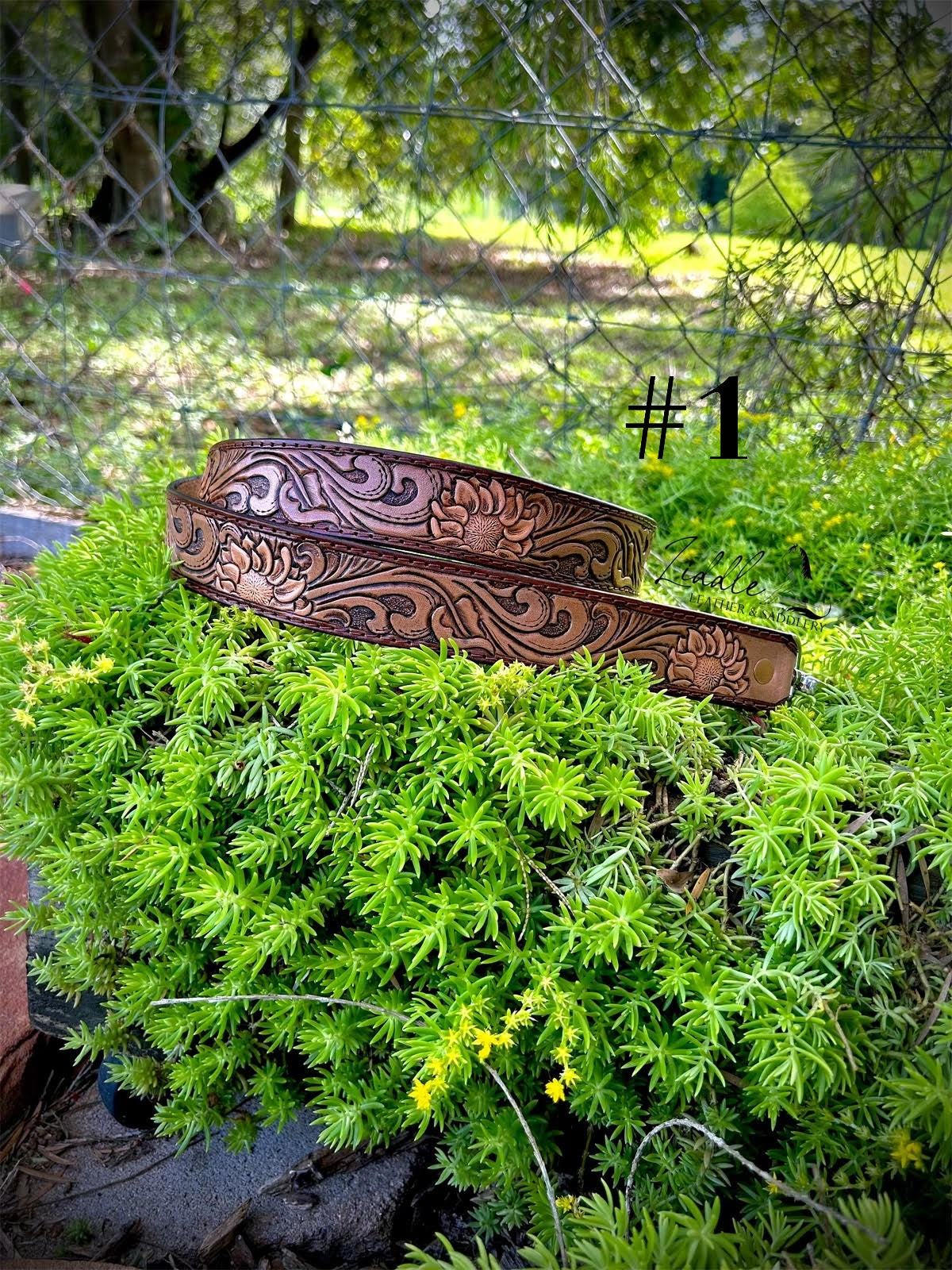 - Tooled floral pattern.