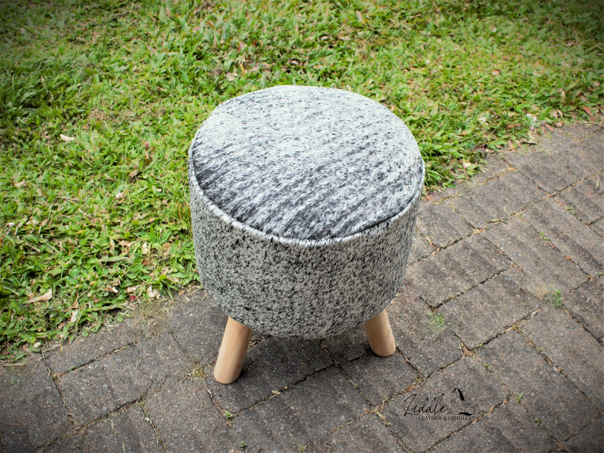 Mostly white with black speckle pattern throughout. x3 wooden legs