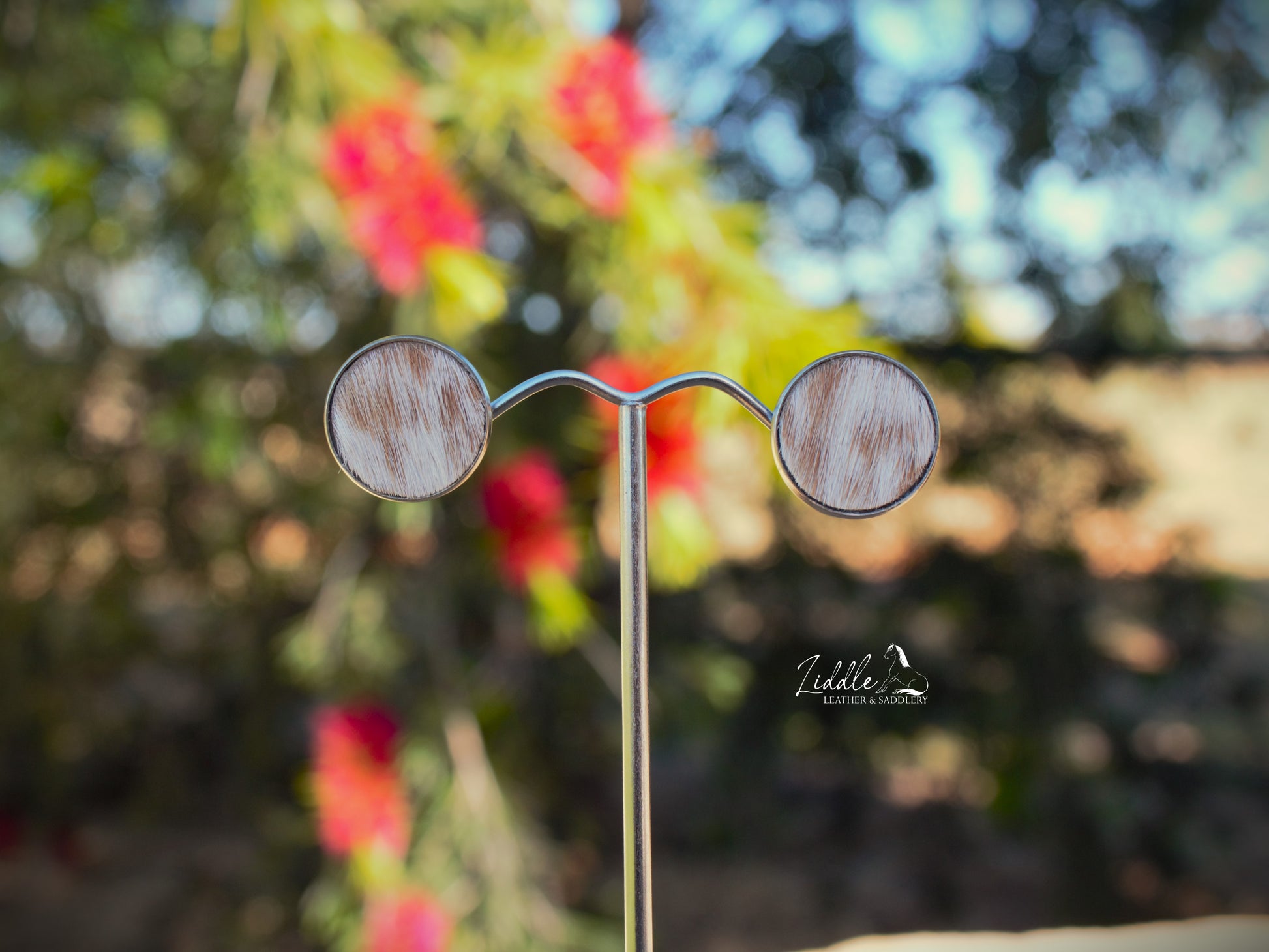 Cowhide Stud Earring Tan and White